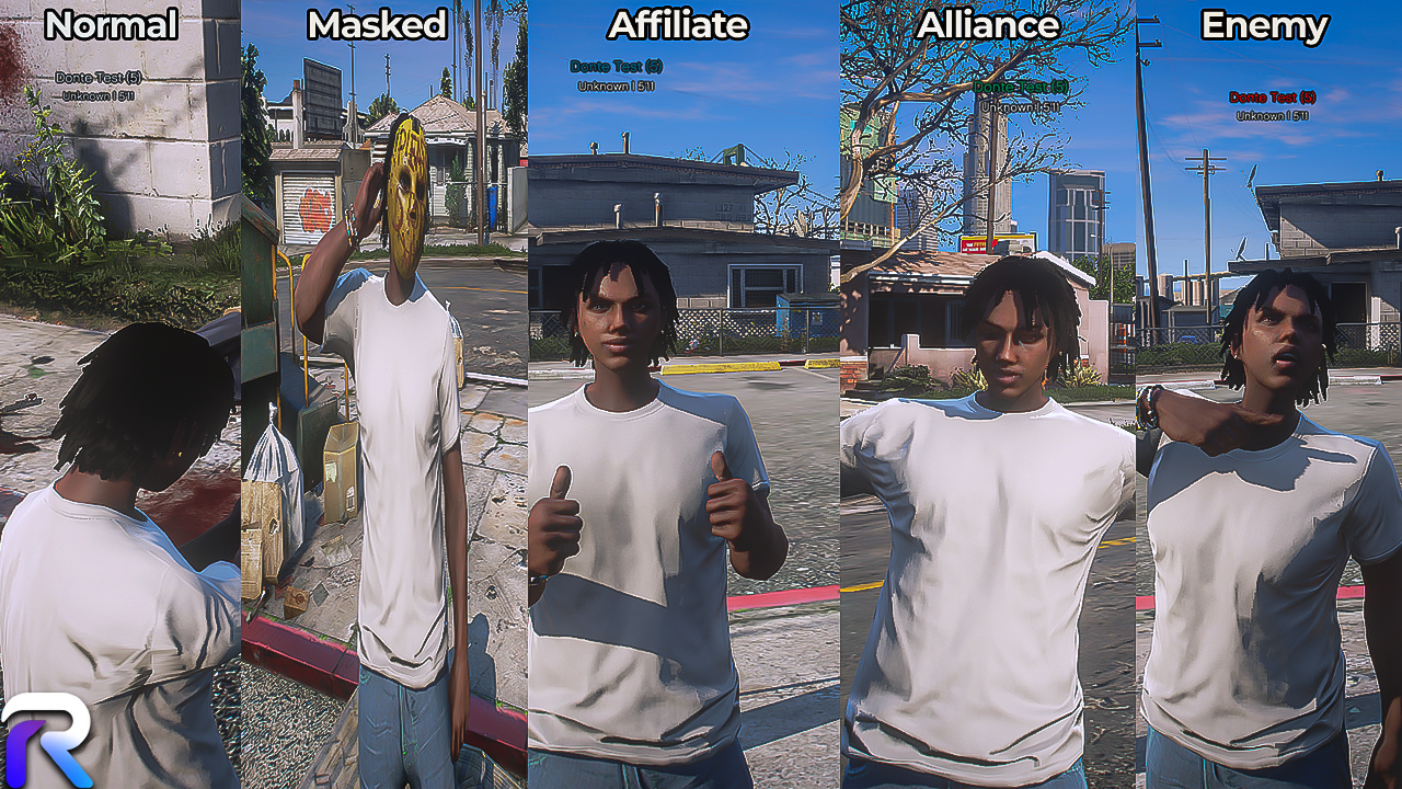 Our name tag script enhances your server by displaying dynamic nametags above players' heads, with the ability to categorize players as enemies, allies, or affiliates. This is especially useful on roleplay servers where player relationships are crucial. The script offers extensive customization options, allowing you to fine-tune the behavior and appearance of nametags to match your server’s unique atmosphere.